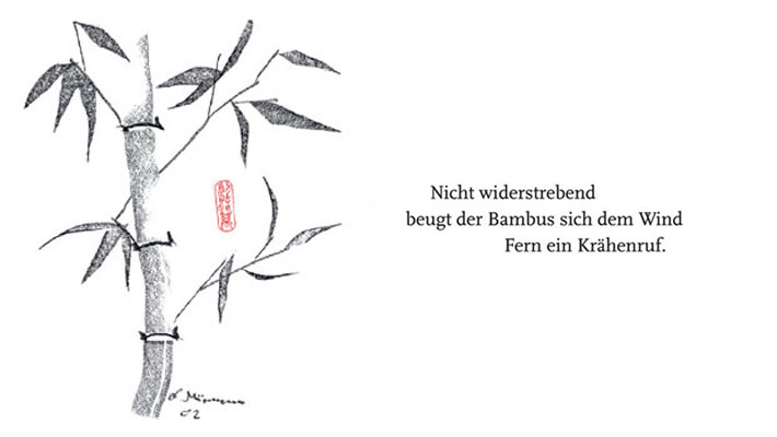 Die Karten sind in der Mitte durch eine Rillung geklappt, so dass das Haiku oder Gedicht innen liegt. Die andere Seite der inneren Kartenseite ist frei für persönliche Grüße etc.