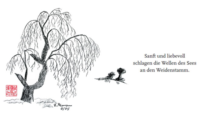 Der Text ist auf Deutsch und Japanisch zu lesen. Übersetzt hat ihn Sachiko Oishi-Hess. Das liebevoll gestaltete Buch ist voller fernöstlicher Tuschezeichnungen von Yasusada Seki. Auf eindrucksvolle Weise dokumentieren sie die Kunst der japanischen Tuschezeichnungen und ermöglichen gleichzeitig einen Blick in das japanische Leben.